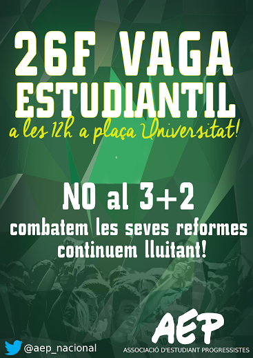 L’estudiantat hem de dir prou per la construcció del sistema universitari i educatiu del poble. Hem d’aturar aquest atac i tots els que ens vinguin. Des de l’AEP fem una crida a la vaga d’estudiants d’aquest 26F per mostrar el nostre rebuig, així com també a l’organització dels i les estudiants als seus centres d’estudi per la transformació de la universitat i la conquesta dels nostres drets.