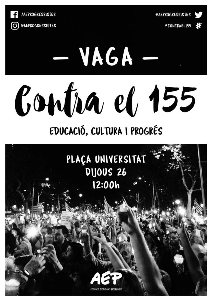 És per això que de forma conjunta amb les companyes del moviment estudiantil fem una crida a la vaga pel proper dia dijous 26 d’octubre, així com convoquem a la manifestació de les 12h que tindrà com a punt d’inici la plaça Universitat. Tornem a omplir els carrers, les estudiants tornarem a ser punta de llança de la lluita contra la repressió!
